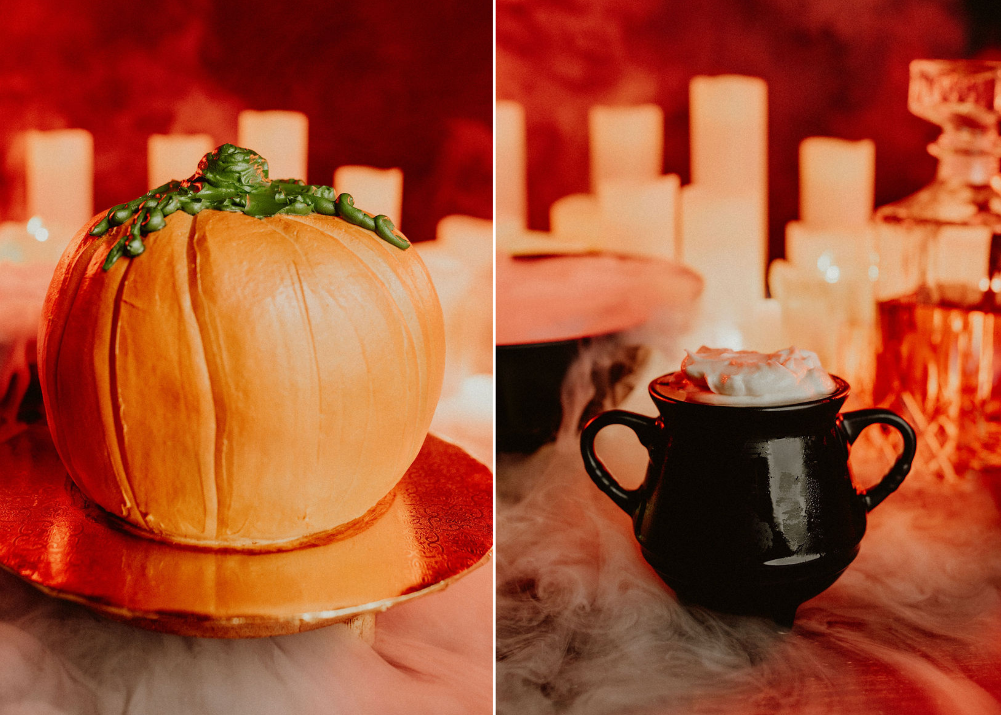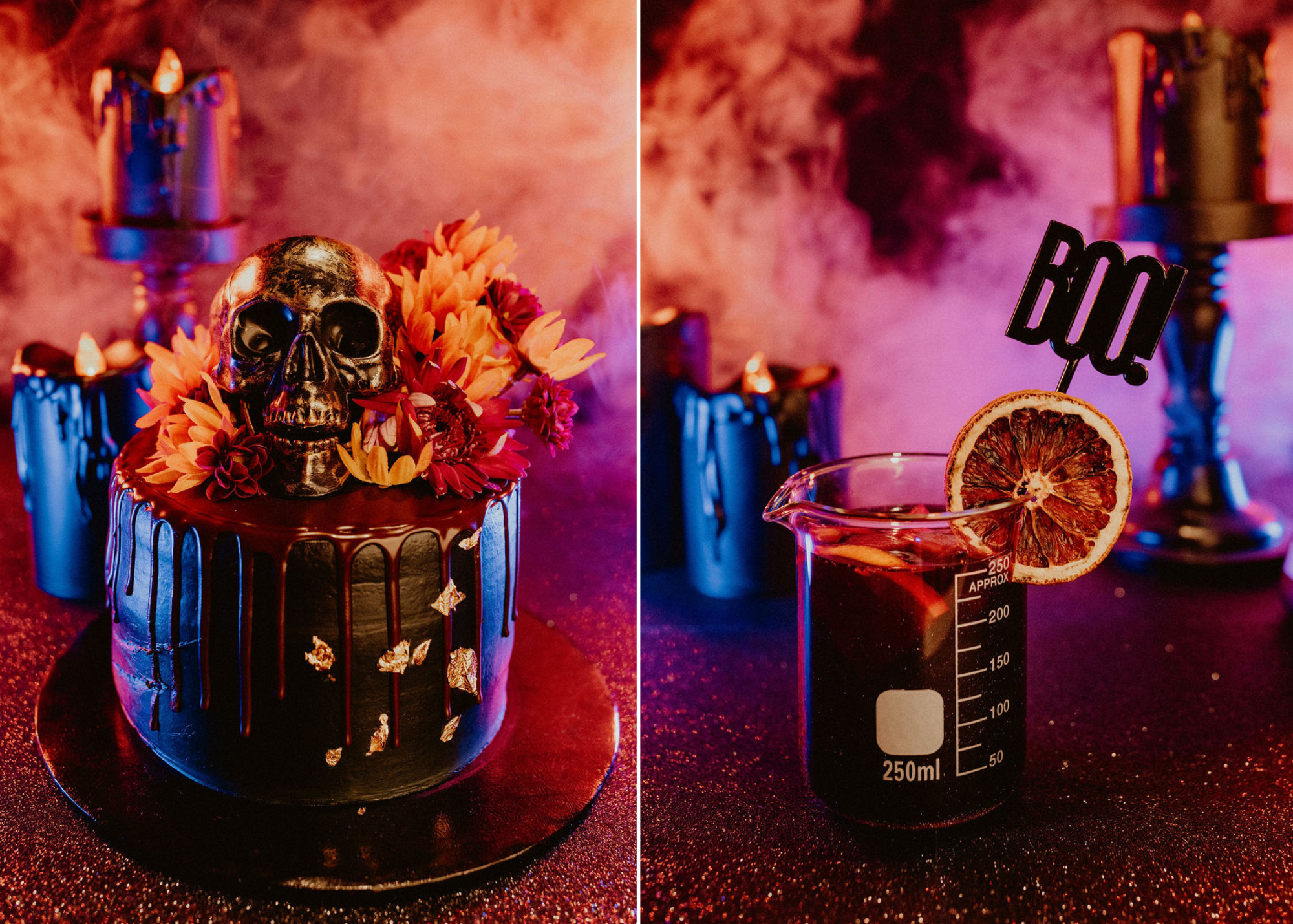 Another fun twist to this years cocktail roundup - I brought on the CRAZY talented cake maker, Ashanty of Meraki Cakes, to make cakes that pair with each cocktail because…well, what is a Halloween shoot without some serious treats?! And Ashanty blew our minds with the incredible cakes she created - not only are they STUNNING visually, but they tasted incredible. I highly recommend reaching out to her for your Halloween Parties… well, any party for that matter!